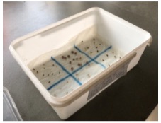 De komende week wordt ook binnen (in huis) gezaaid: zowel bloemen (gazania, geraniums) als vruchtgewassen (parika’s en pepers). Ook het zaaien van artisjokken staat op het programma. Om te zorgen voor extra warmte bij het zaaien gebruiken Joke en Fred een klein verwarmingsmatje dat onder de bak met zaaigoed ligt.