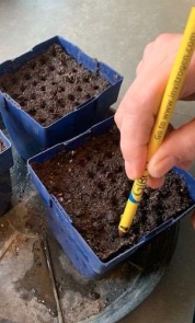 De komende week wordt ook binnen (in huis) gezaaid: zowel bloemen (gazania, geraniums) als vruchtgewassen (parika’s en pepers). Ook het zaaien van artisjokken staat op het programma. Om te zorgen voor extra warmte bij het zaaien gebruiken Joke en Fred een klein verwarmingsmatje dat onder de bak met zaaigoed ligt.